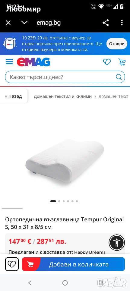 Ортопедична възглавница Tempur Original S, 50 x 31 x 8/5 см