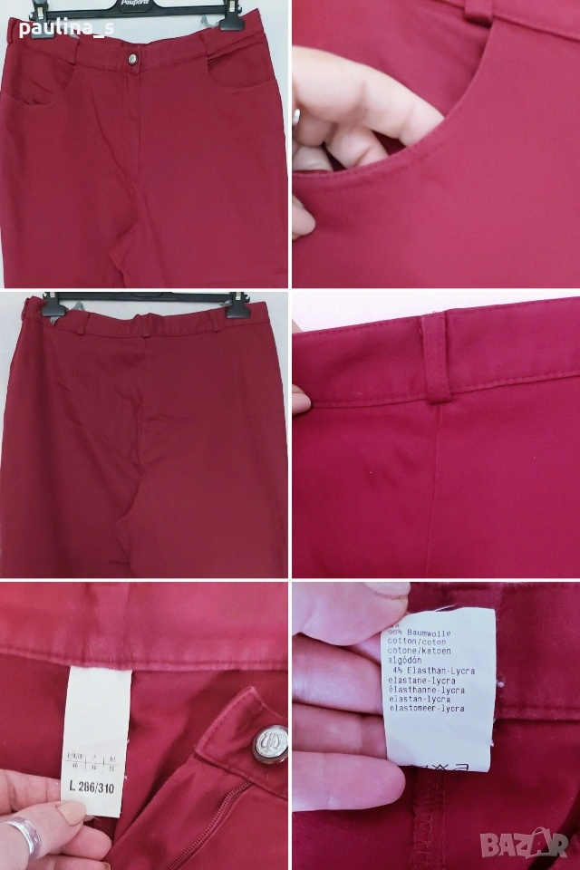 Талията е sitts on the waist, на кръста, джобовете са хоризонтално разположени. Изработката е много прецизна и качествена-бутиков артикул. Като нови, една бройка, поради голямата еластичност стават до XL - 42EU.