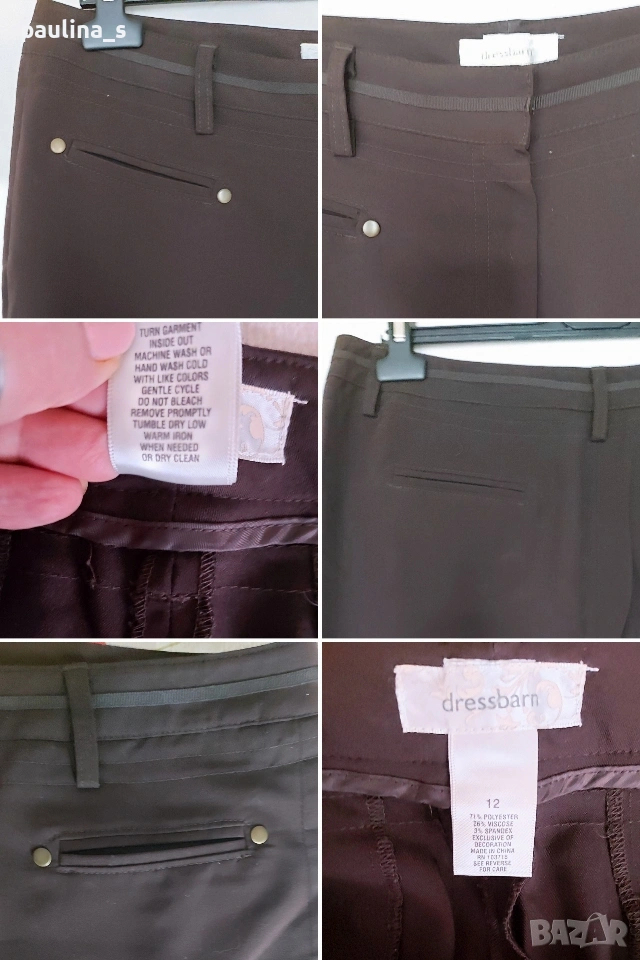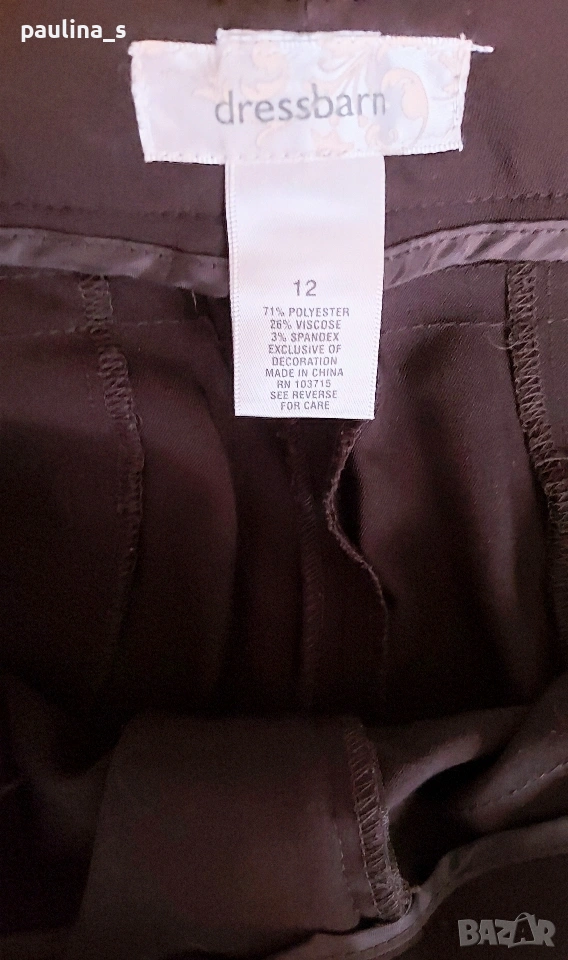 3️⃣ L / XL - "dressbarn". Цената е крайна, без пазарлъци 15 евро. Уникални еластични бермуди, изработката е перфектна. Платът е немачкаем, цветът е тъмно кафяв - Тъмен Шоколад. Моделът е прав без интервенции в ширината на крачолите, оксидирани кабси отпред, скрито закопчаване.