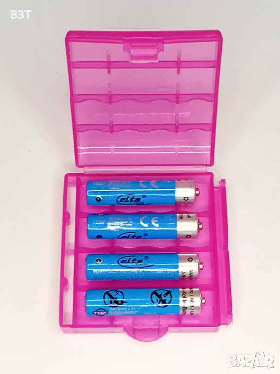 ПРОДУКТ: КУТИЯ ЗА СЪХРАНЕНИЕ НА 4 БРОЯ БАТЕРИИ AA/AAA ПЛАСТМАСОВА ПРОЗРАЧНА РОЗОВА
