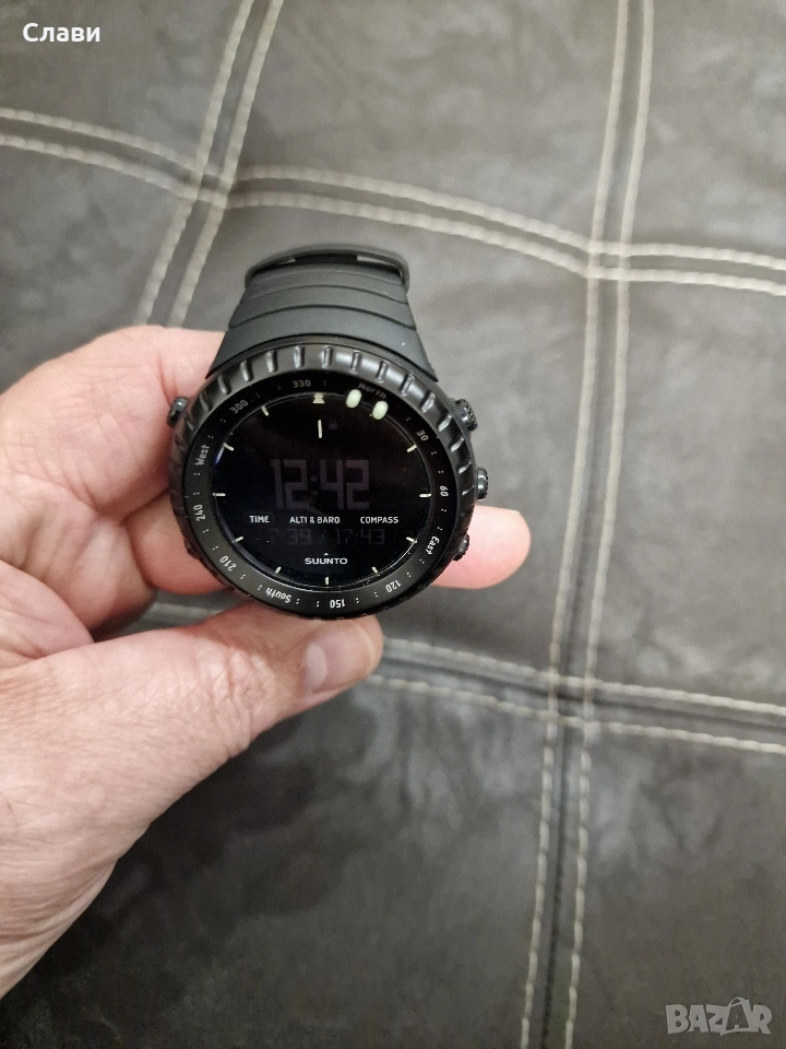 Suunto Core Ви държи информиран чрез точния алтиметър, барометър, дигитален компас, термометър, и индикатор за времевите тенденции.Сензорът за налягане на Suunto Core, работи в четири основни режима, включително и един автоматичен, при който сензора в часовника усеща движението Ви или липаста на такова, като превключва между алтиметър и барометър. За първи път в часовник за спортуване на открито е включен и дълбокомер с обхват до десет метра. Компаса е оборудван с класическия въртящ се пръстен, както и с еднобутонна функция с която да фиксирате и следвате курс.Функциите на часовник включват двойно време, календар, аларма, хронометър, и време на изгрев и залез. Топ модел, един от първите и най-продаваните модели на марката Здрава конструкция с удобна каишка Барометър и компас с информация за времето Метеорологични функции Температура Аларма за буря Изгрев / залез Измерване на дълбочината за гмуркане Показване на дата и час Живот на батерията до 12 месеца (сменяема CR2032) Езици: EN, FR, DE, ES Водоустойчивост: 30 метра (съгласно ISO 6425) Таймер Хронометър Висотомер Надморска височина Налягане на морското равнище Метрични и британски мерни единици Матричен дисплей с ясна видимост и големи цифри Гмуркане: до 10 метра.