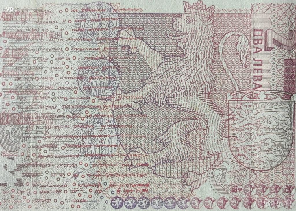 Микро-текст на обратната страна - в изображението на лъва са изброени имена на български царе "ИВАН АЛЕКСАНДЪР МИХАИЛ III ШИШМАН".