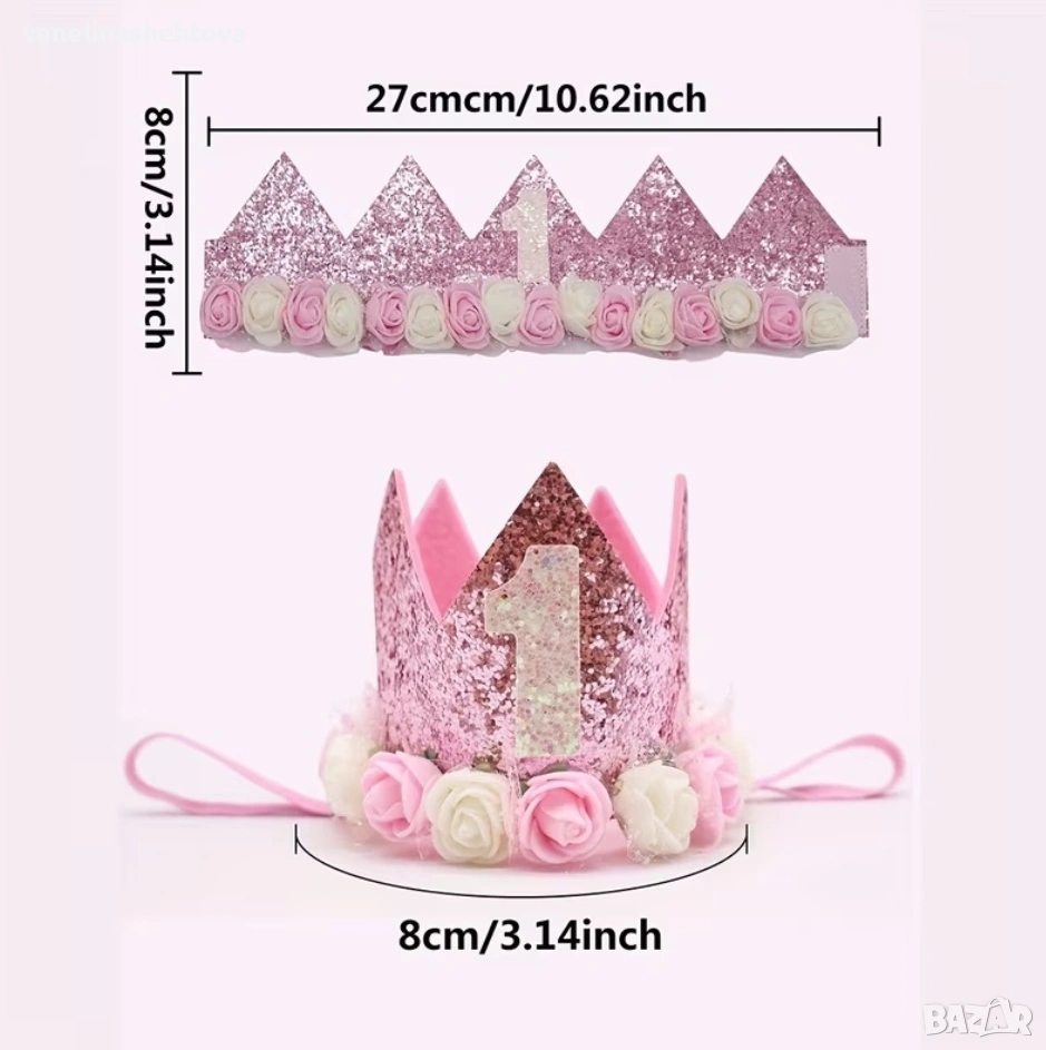 1 година първи рожден ден парти розова корона с цветя и брокат , снимка 1 - Други - 53293616 1 година първи рожден ден парти розова корона с цветя и брокат , снимка 2 - Други - 53293616 1/2