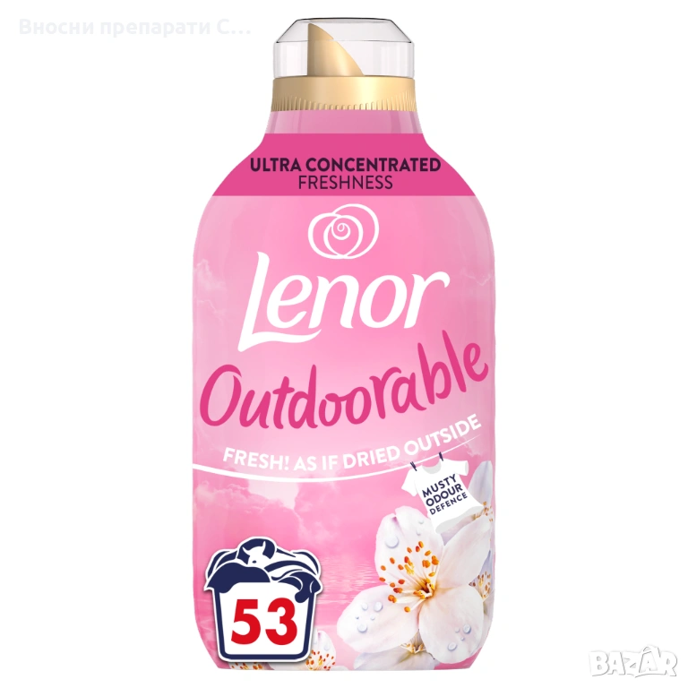 Насладете се на свежест, сякаш сте изсушили дрехите си навън, дори когато сушите вътре! Ултраконцентрираната формула за свежест на Lenor Outdoorable е по-концентрирана в сравнение с други омекотители за тъкани Lenor, осигурявайки ви 76 пранета в малка бутилка. Благодарение на иновативната си технология, ви е необходима само малка доза, за да получите усещането за сухота, независимо от времето! В комбинация със защита от миризма на мухъл, омекотителът за тъкани Lenor Outdoorable Dreamy Jasmine ще осигури дълготрайна наслада от свежест. С нежни и свежи нотки на бял жасмин, потопете се в розовите нюанси на меки и мечтателни облаци. Lenor Outdoorable е разработен съвместно с потребителите, за да пресъздаде свежестта на открито и продължава да освобождава свежест, когато тъканите са току-що изсушени, съхранявани в шкафа и дори когато се местите.