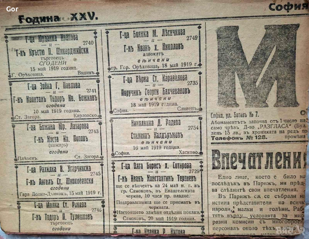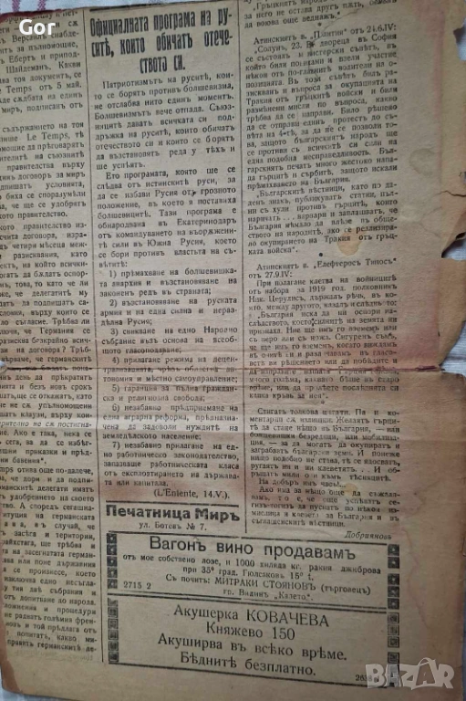 – предна корица, заменена още в периода с автентична вестникарска страница от 1919–1920 г. (типична практика за времето)