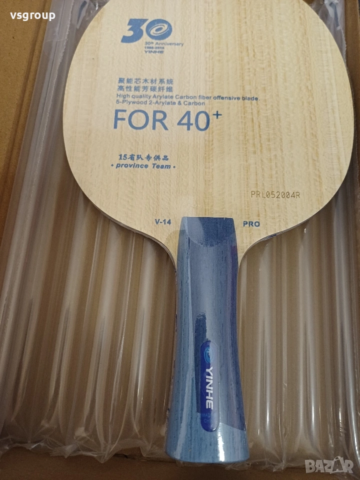 Дърво за тенис на маса Yinhe Galaxy V-14 RPO е висококачествено композитно дърво от престижната "VENUS" серия дървета на Yinhe. V-14 PRO е от лимитирана серия по случай кръглата годишнина "30 Години Yinhe". Композитно дърво с два слоя Арилейт карбон. Платове: 5 дърво + 2 Arylate carbon Скорост: 9.7 Контрол: 8.2 Дебелина: 5.9 mm Тегло: 90 +-1 гр. Рейтинг: OFF+ Много качествено дърво от престижната VENUS серия на Yinhe.