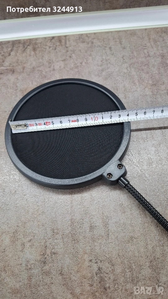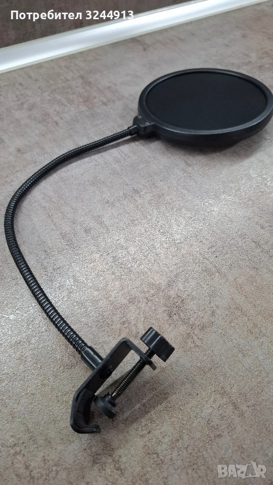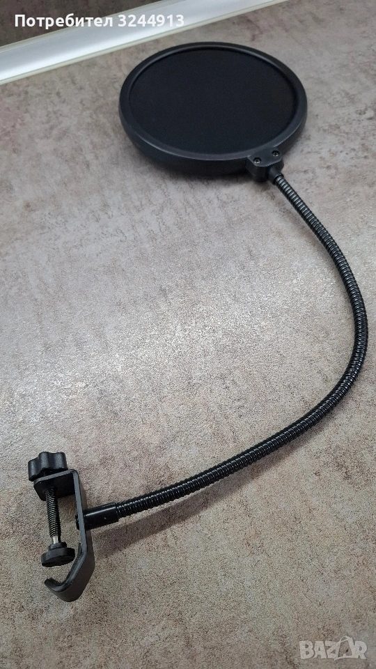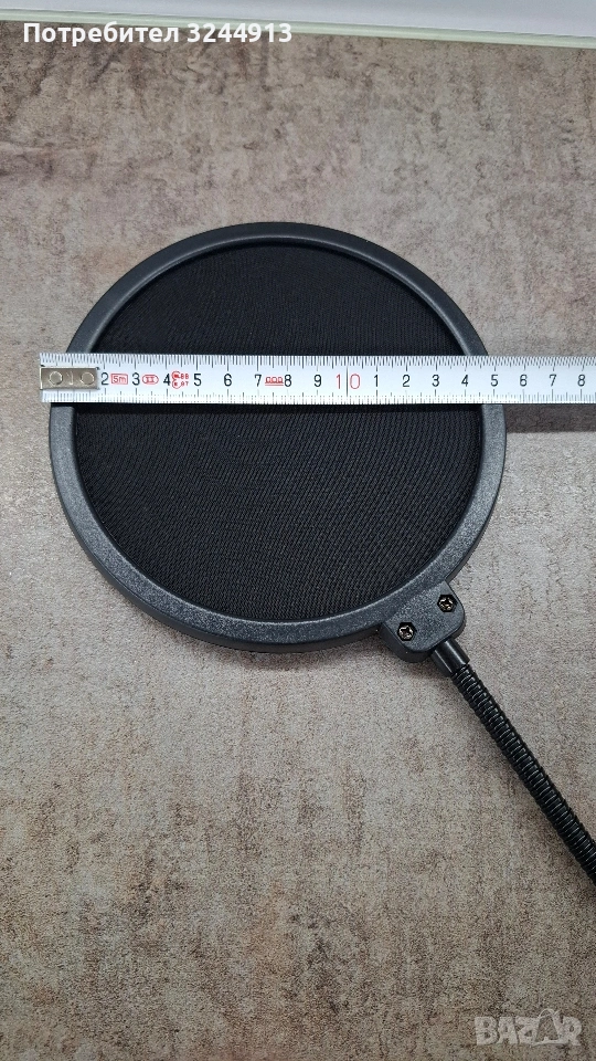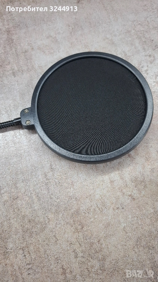 Чисто нов не е ползван, поп филтър за микрофон ,двойна мембрана с диаметър 6 инча или 15,24см виж снимки с размери.