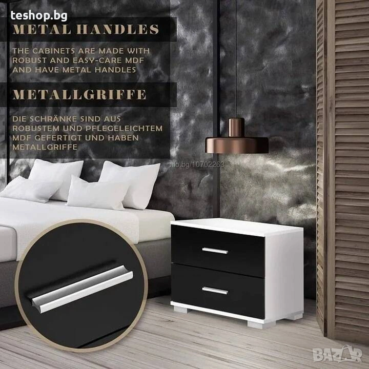 2 x нощни шкафчета в черно и бяло като комплект за самостоятелно сглобяване
