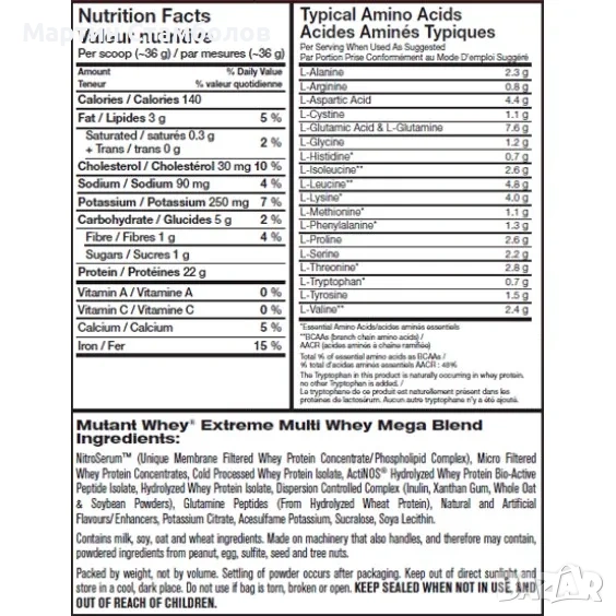 Възстановяване на мускулната тъкан: Протеинът в MUTANT Whey играе ключова роля в процеса на възстановяване на мускулната тъкан след интензивни физически усилия.