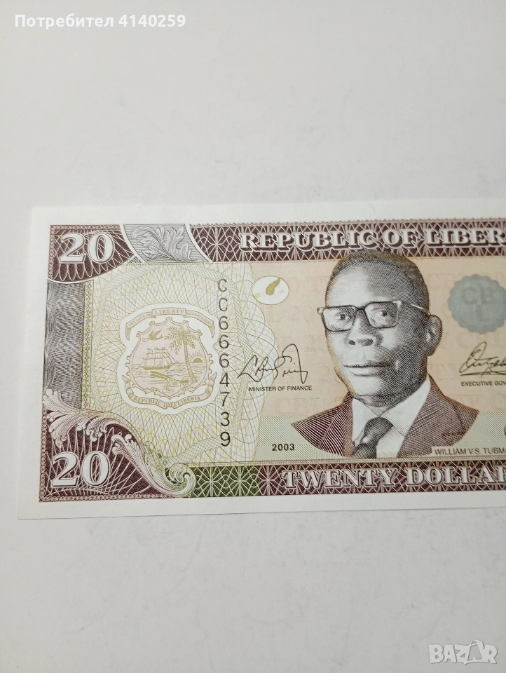 ЛИБЕРИЯ БАНКНОТА 20 ДОЛАРА 2003 Г → Обява 53294727
