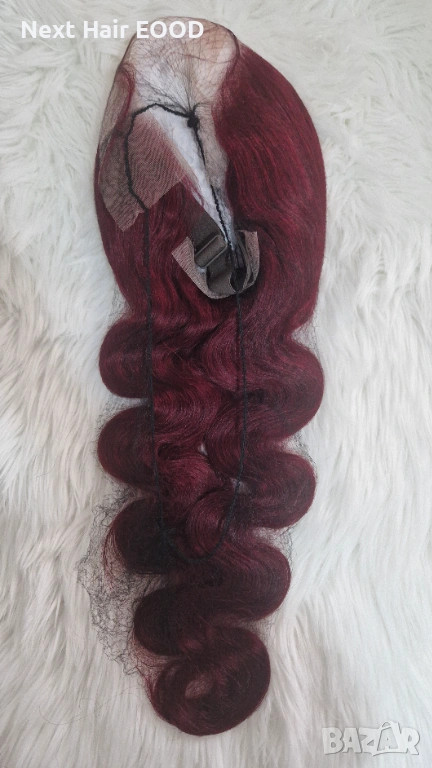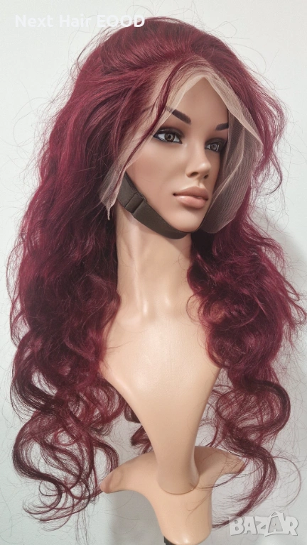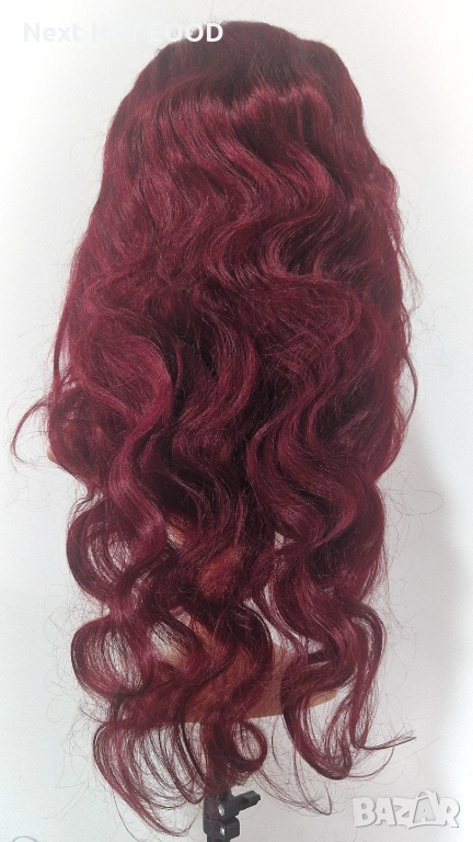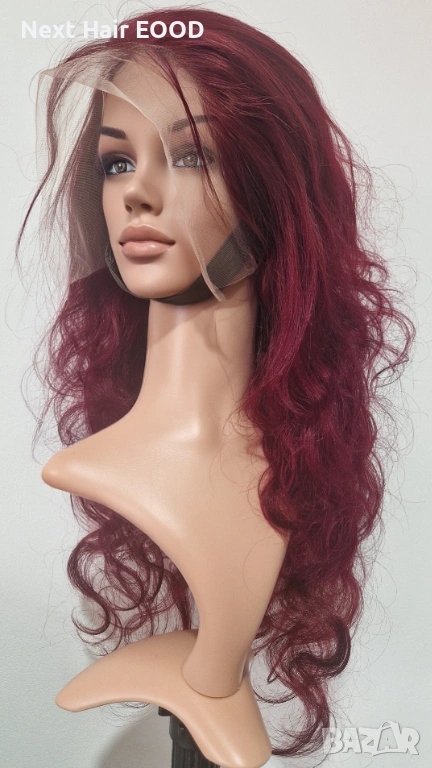 Луксозна естествена перука от 100% бразилска коса с дължина 75 см. Косата е в наситен тъмно червен цвят с красива чуплива текстура, която придава обем и елегантна визия. Перуката разполага с дантелена зона 13x6, осигуряваща естествен вид на скалпа и възможност за разнообразни прически и път.
