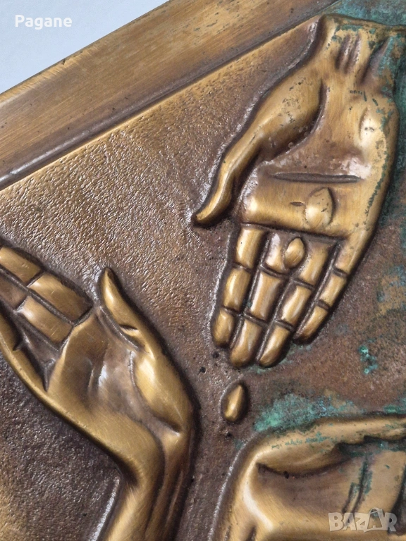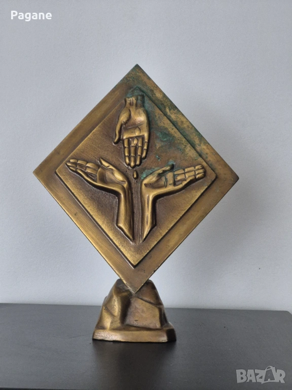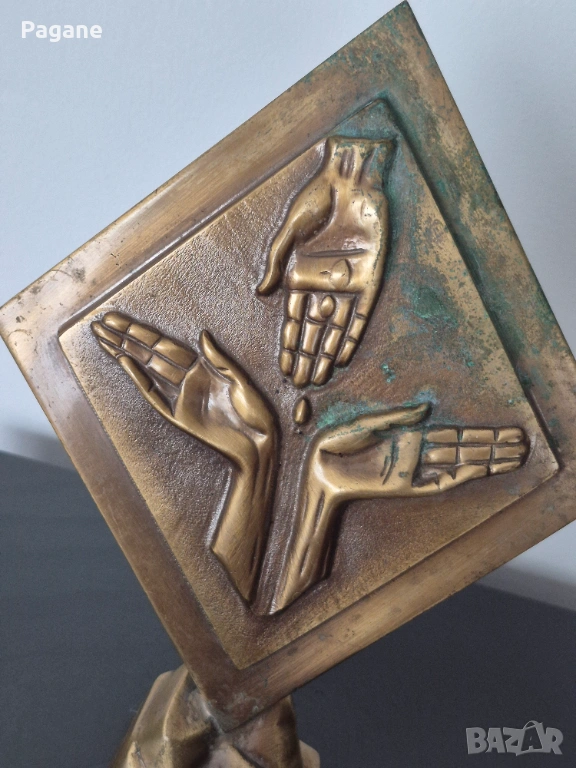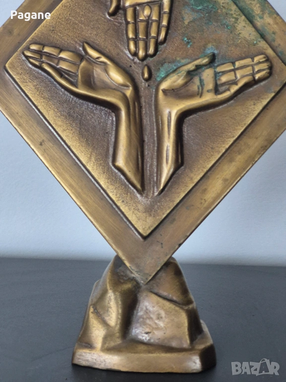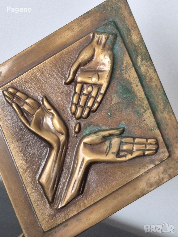 ​Дизайн: Композиция от три длани върху ромбовидна основа. Масивна и тежка изработка - 0.900 кг.