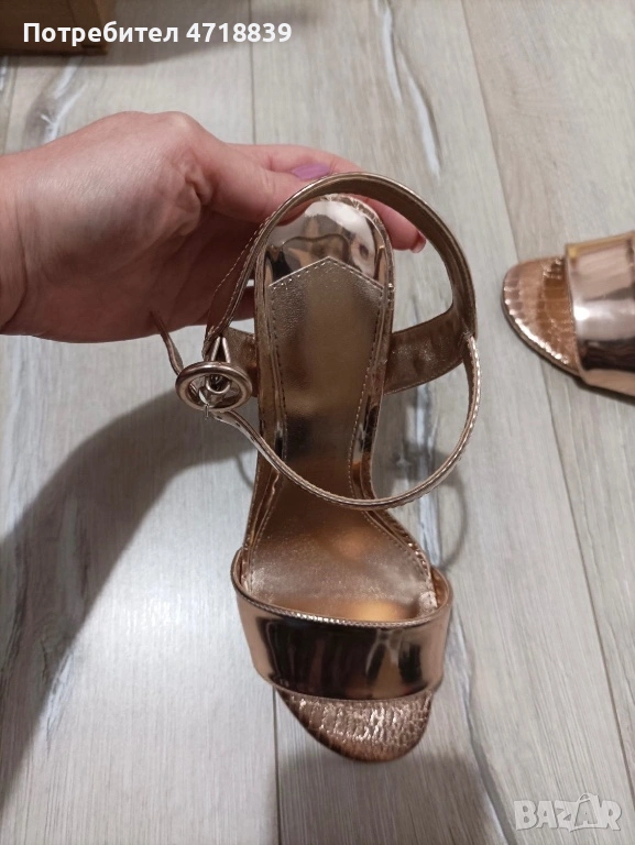 Златисти обувки на ток → Обява 53295079