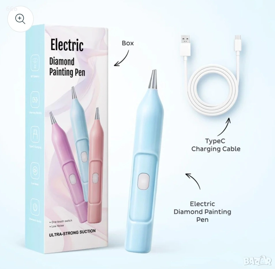 Електрическа диамантена писалка за рисуване с вакуумна технология, за диамантено рисуване.