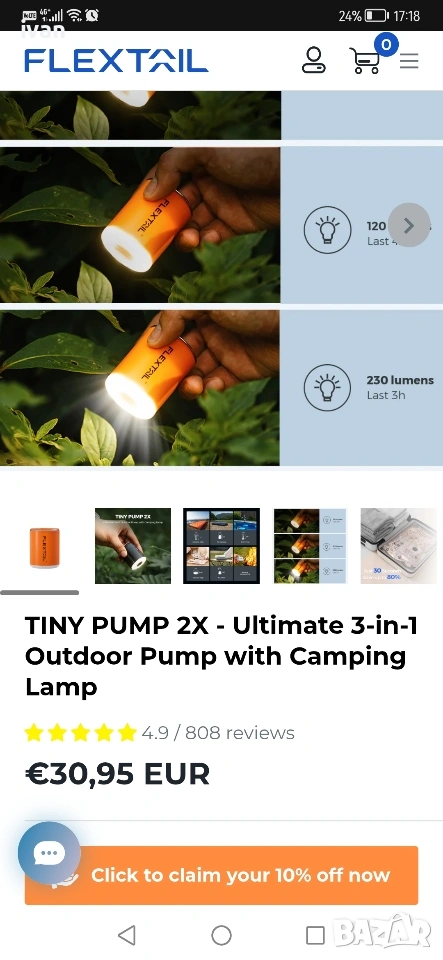Помпа в комбинация с лампа за къмпинг на утвърдената марка за къмпинг обурудване Flextial.