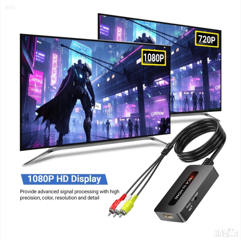 Този RCA (AV/композитен) към HDMI конвертор е за аналогов композитен входен сигнал и го преобразува в HDMI 720P/1080P (60Hz) изход. За по-стари устройства с RCA за възпроизвеждане на HDTV. Дайте втори живот на старите си устройства и ви позволете да гледате RCA сигнали на HDMI телевизори.