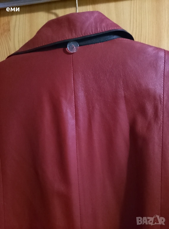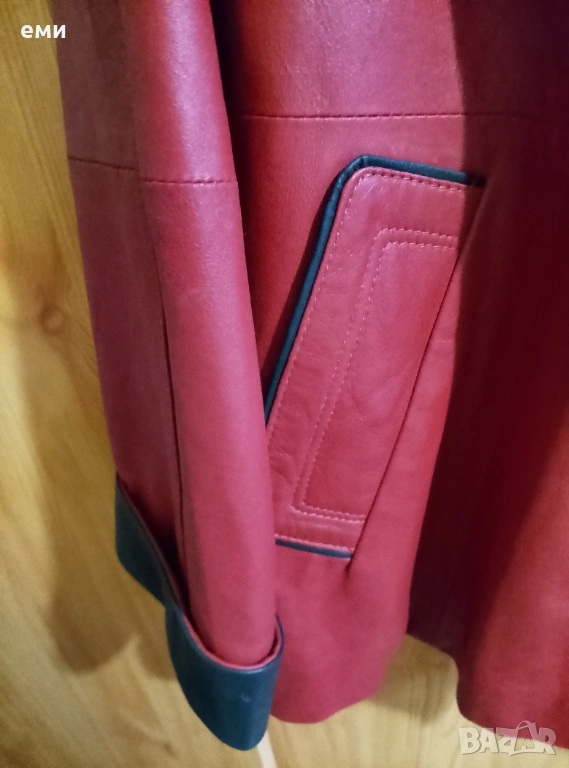 Супер интересно екстравагантно яке от мека естествена кожа в красиво червено с черни елементи. Не е носено, ново. Размери- дължина 69см, дължина ръкав 60 см, ширина под мишници 54 см.