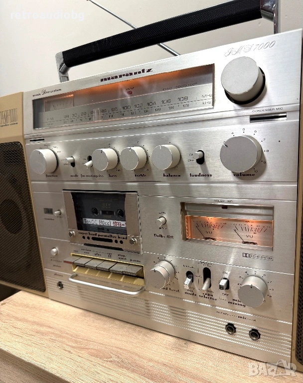 ΠΈ ΠΏΡΡΠ½Π°Ρ Π½Π° ΠΏΠ°Π·Π°ΡΠ° ΠΎΠΊΠΎΠ»ΠΎ 1980 Π³., Marantz PMS-7000 Π΅ ΡΠΌΠ΅Π» ΠΈ ΡΡΠ΄ΡΠΊ Π±ΡΠΌΠ±ΠΎΠΊΡ ΠΎΡ Π΅ΡΠ°ΡΠ° Π½Π° Superscope - Π½Π΅Π·Π°Π±ΡΠ°Π²ΠΈΠΌ ΠΊΡΠΎΡΠΎΡΠ²ΡΡ Π½Π° ΡΡΡΠ΄ΠΈΠΉΠ½Π° ΠΌΠΎΡΠ½ΠΎΡΡ ΠΈ ΠΏΡΠ΅Π½ΠΎΡΠΈΠΌΠ° Π΅Π»Π΅Π³Π°Π½ΡΠ½ΠΎΡΡ. Π‘ ΡΠΈΡΡΠΎΠ² AM/FM ΡΡΠ½Π΅Ρ, ΠΊΠ°ΡΠ΅ΡΡΡΠ΅Π½ Π΄Π΅ΠΊ ΠΈ Ρ