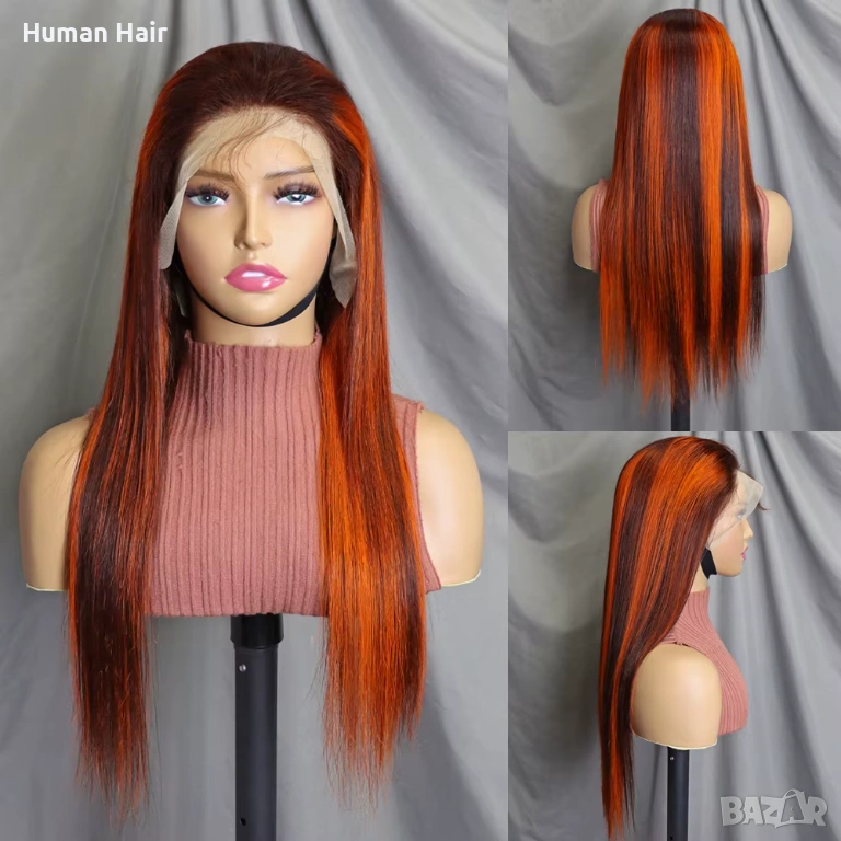 Естествена перука от 100% бразилска коса, създадена за впечатляваща и модерна визия. Кестенявият основен цвят е стилно допълнен с оранжеви кичури, които придават свежест, дълбочина и уникален характер на прическата.
