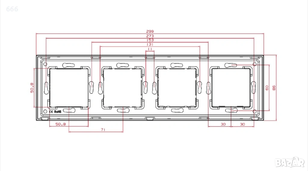Контак , Четворен, Със стъклена рамка, Бял → Обява 53296197