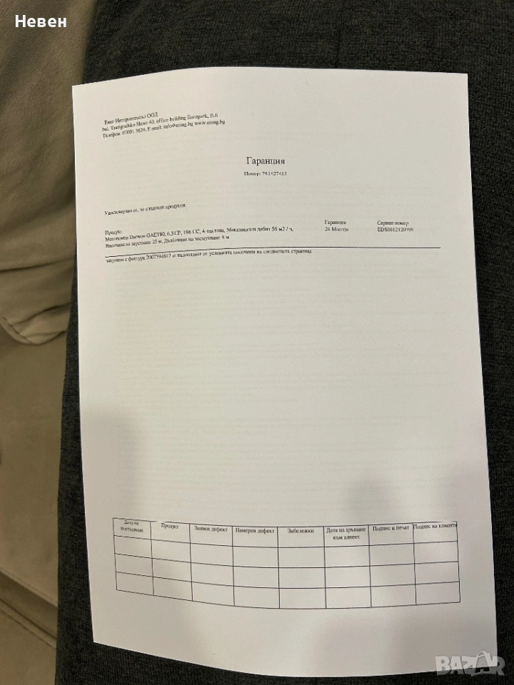 Моторна помпа за вода с максимална дълбочина на засмукване 8 м и капацитет на резервоара 4.5 л