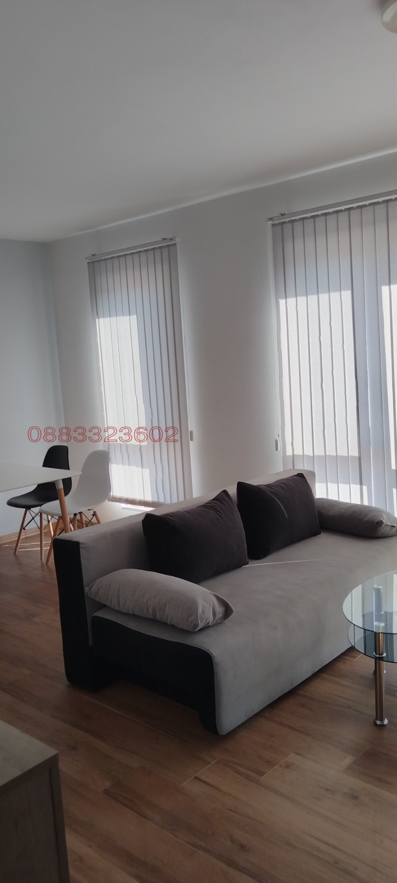 Отдавам двустаен апартамент под наем в кв. Кючук Париж, бул. Вапцаров. Изцяло южно изложение, асансьор, всички необходими уреди, просторна тераса. Много светъл и топъл апартамент! Идеално състояние! Ново строителство, поддържани общи части. В близост училище, магазини, заведения за хранене, денонощна аптека, спирка на градския транспорт.