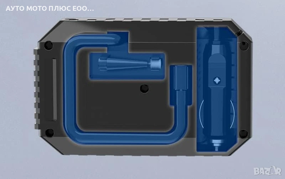 Kомпресора е с компактен размер и лесно може да се съхранява в колата без да заема много място.