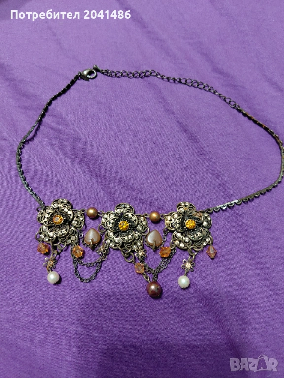 Месингово флорално колие Еdwardian стил.Винтидж стил с перли и цирконий.
