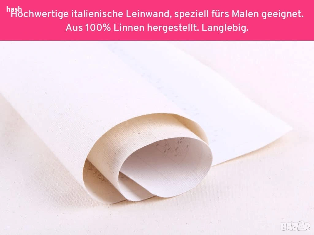 Висококачествено италианско платно, специално разработено за рисуване. Полетата и символите върху предварително отпечатаното платно са лесни за четене и самото платно е лесно за рисуване. Дебелата текстура на платното осигурява издръжливост и е устойчиво на разкъсване. Платното е специално проектирано за акрилни бои. Винаги изпращаме платната в кутия, за да не се набръчкват или огънат.