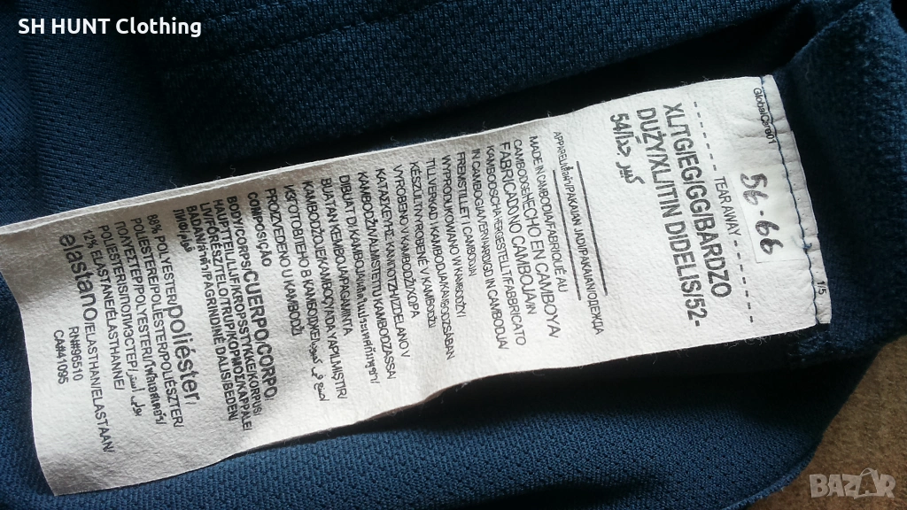 Размер L / XL - ширина под мишниците при нормално положение 59 см , разтяга се до 68 см , дължина 86 см заедно с яката , 81 см без яката. Дължина на ръкава от яката до края 80 см , от мишницата до края 52 см.