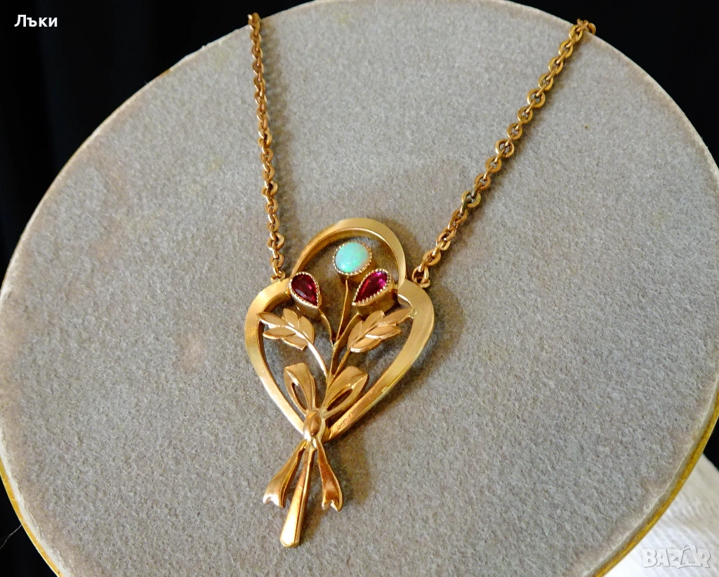 снимките.Колието е с дължина 22 см.Висулка 4 х 2.2 см.Опал диаметър 4 мм.Тегло