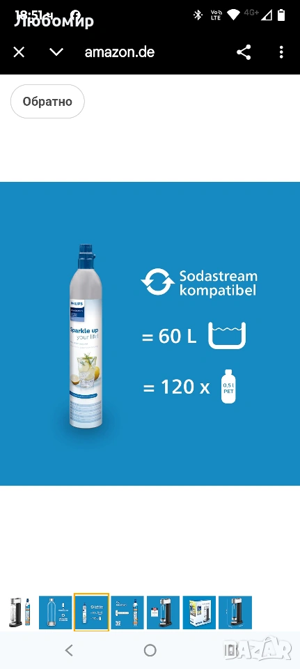 Мострена не различима от нова в бутилката незнам колко газ има....Намалява пластмасовите бутилки – до 60 литра вкусна газирана вода, само с един CO² патрон. Същевременно спестявате околната среда с приблизително 120 пластмасови бутилки за еднократна употреба.
