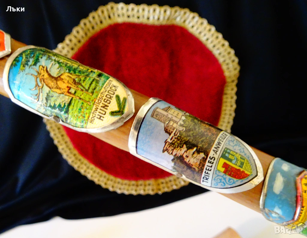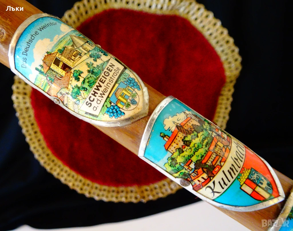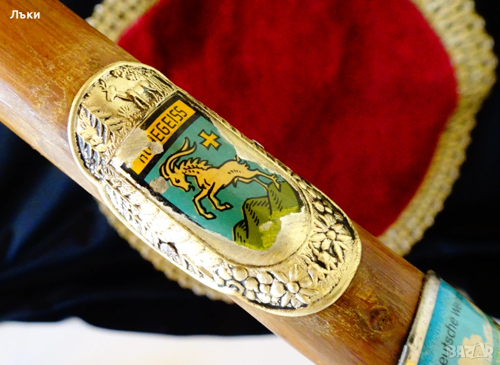 Стар тиролски туристически бастун,ръчно изработен от естествено