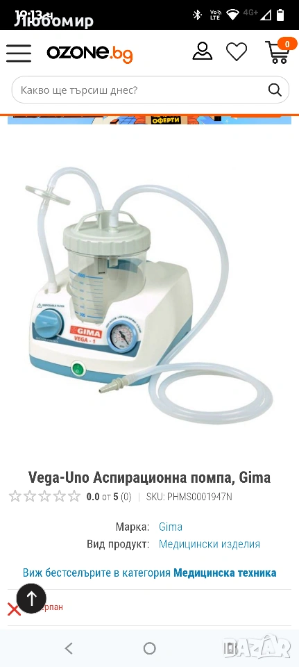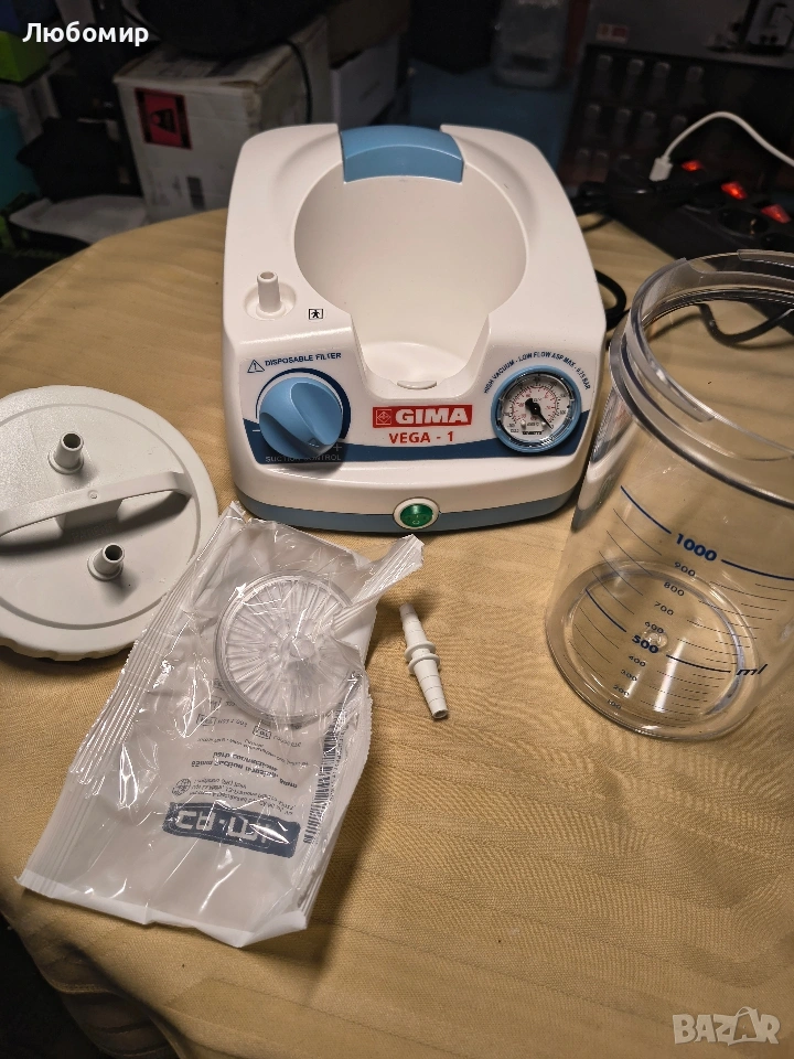 Нов без опаковка липсват маркучите....Vega-Uno на Gima е тиха, компактна и надеждна аспирационна помпа за малка хирургия. Тя се препоръчва за назална аспирация, орална аспирация и трахеална аспирация на телесни течности (слуз, секрети или кръв) при възрастни или деца.