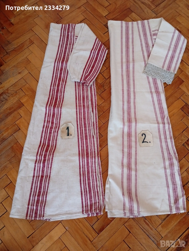 Стари неизползвани женски риза-роба извадени от бабина ракла.Традициони народни ризи N:1,2 тип роба, част от женска