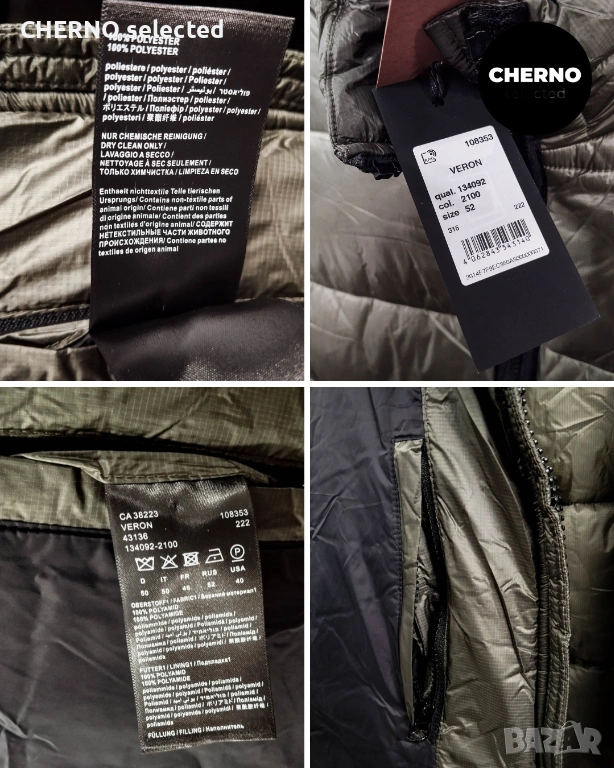 част: 100% полиамид | Пълнеж: 100% рециклиран полиестер | Хастар: 100% полиамид | Поддръжка: Химическо чистене | Сезон: Есен • Зима • Ранна пролет