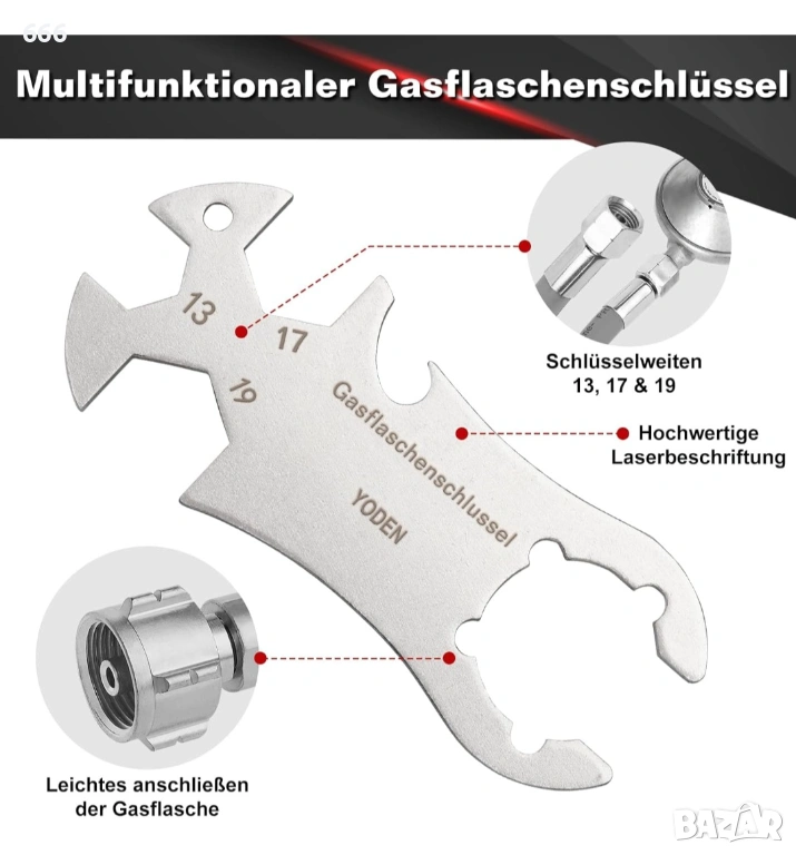 Многофункционален инструмент за ключове за газови бутилки от неръждаема стомана → Обява 53297611