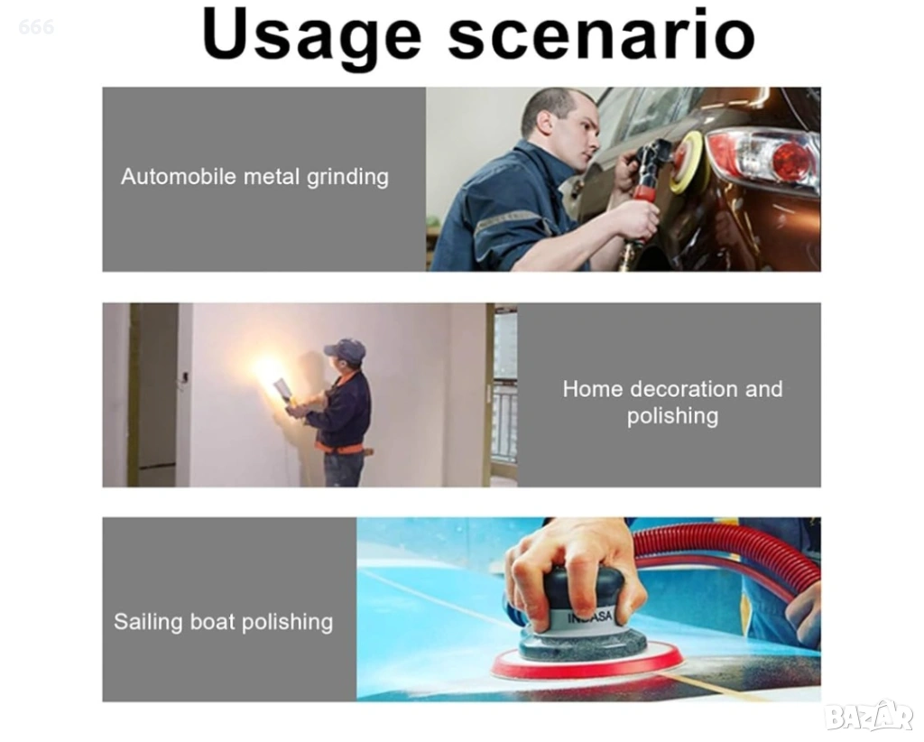 Функция: С тази шлифовъчна подложка можете да извършвате шлайфане, полиране, отстраняване на ръжда и довършителни работи върху различни материали като дърво, метал, пластмаса, боя и др.