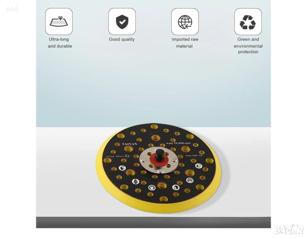 Подложка за ексцентрикова шлайфмашина - 52 отвора - 150 мм → Обява 53297718
