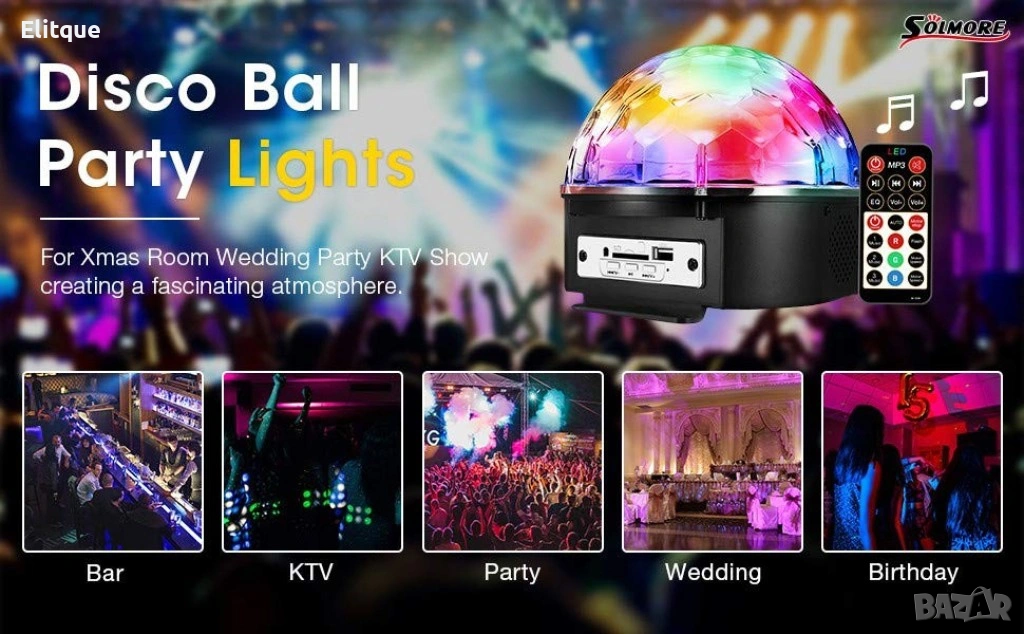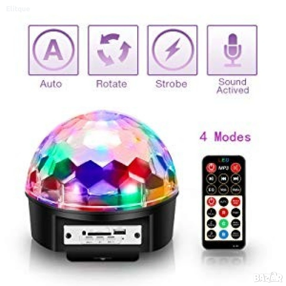 Диско LED лампа с дистанционно управление и USB флашка 💡🎶