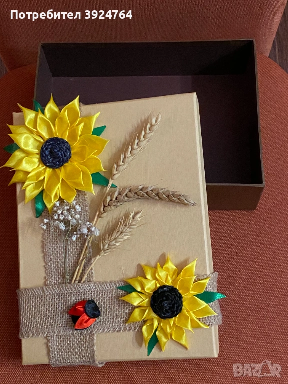 Кутия за подарък декорация сатенени слънчогледи → Обява 53298022