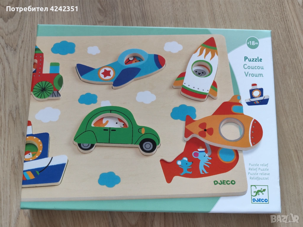 Дървен пъзел Djeco, подходящ за деца над 1 година.
