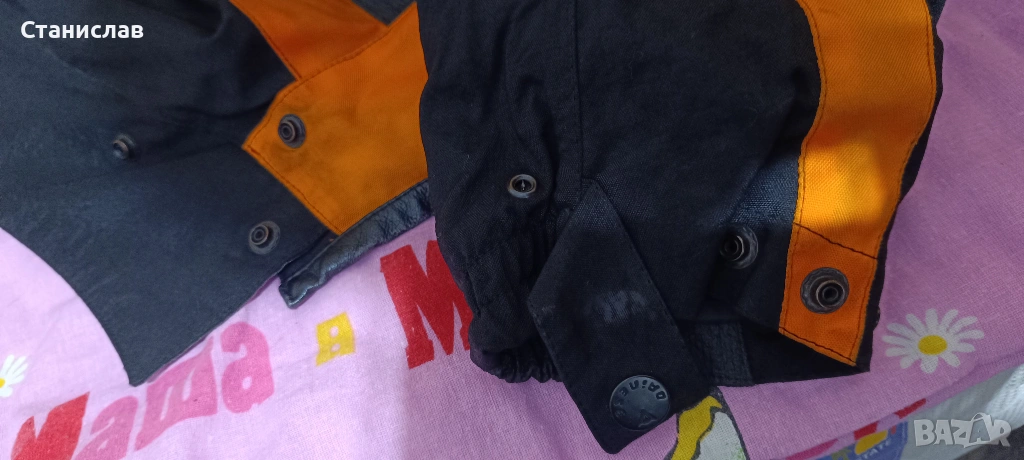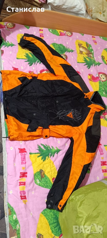 Запазено мотояке с протектори на рамене и лакти и сваляема подплата. Ветро и водоустойчиво. При лично предаване се приемат и български лева.