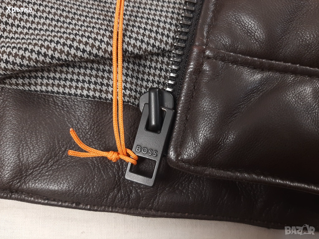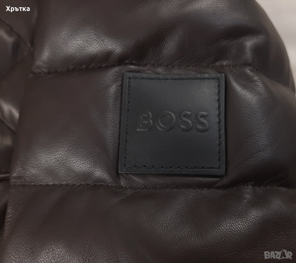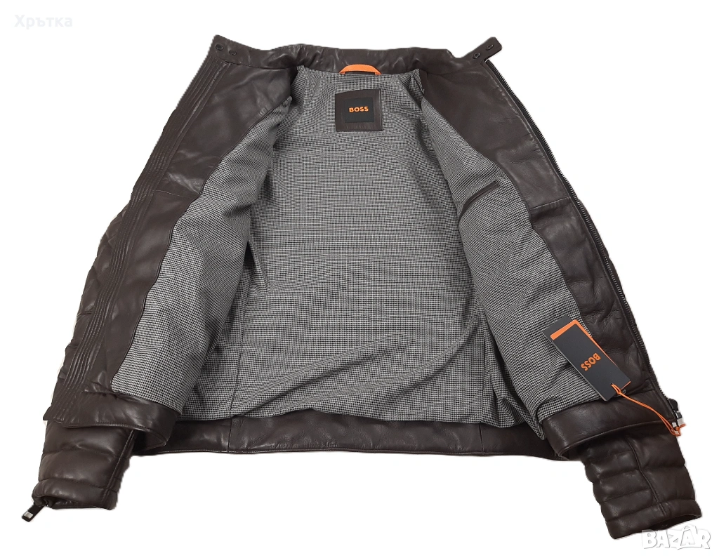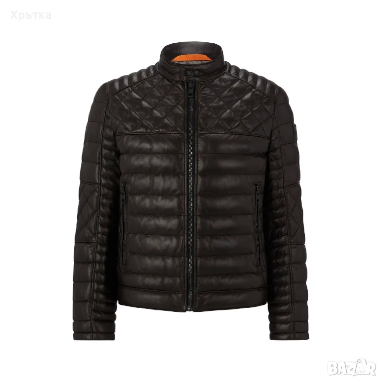 Луксозно мъжко кожено яке от серията BOSS, изработено от мека и висококачествена агнешка кожа, подходящо за ежедневна градска визия, мотористки стил или по‑елегантно комбиниране.
