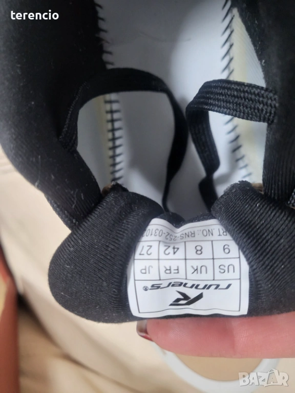 Маратонките са обути броени пъти.Номер 42 ,дължина на стелката 27 см ,спортен модел, изработен с иновативната Soft Shell технология за горната част. Тя комбинира водоотблъскващо покритие и еластична структура, която предпазва от влага и вятър, като същевременно позволява на крака да „диша“.Липсва оригинална стелка / сложила съм нови стелки /.Нямат ожулено или скъсано.Цената е крайна.