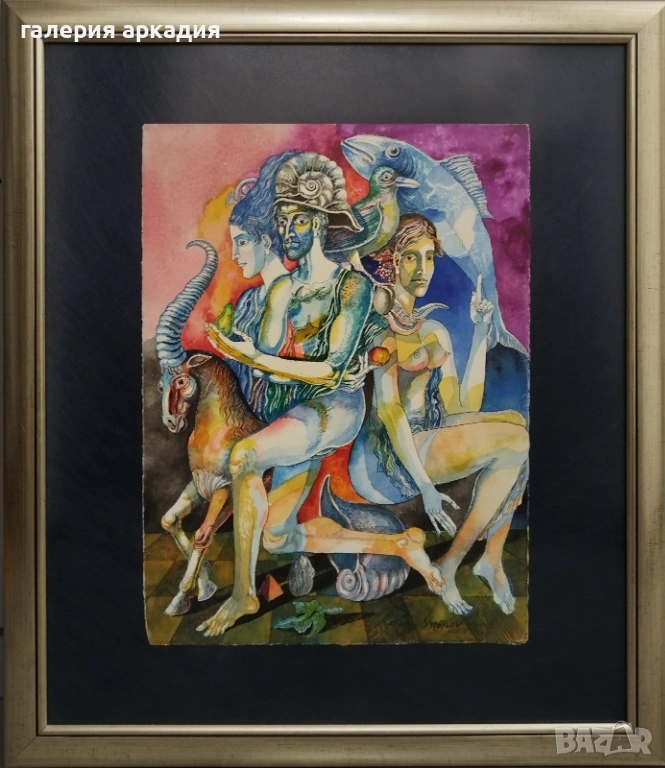 1. Стоян Цанев: "Луна в прозореца" - 1993 г., акварел, размер с рамка 73 х 93 см.