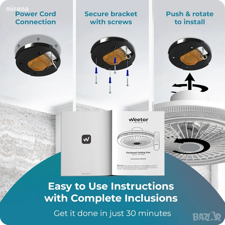 Безопасността среща стила: Насладете се на спокойствие с нашия вентилатор за таван с гнездо и осветление. С компактен, затворен вентилатор за таван без лопатки и светлинен дизайн, нашата лампа за таван с вентилатор осигурява безопасна работа и употреба за цялото семейство.