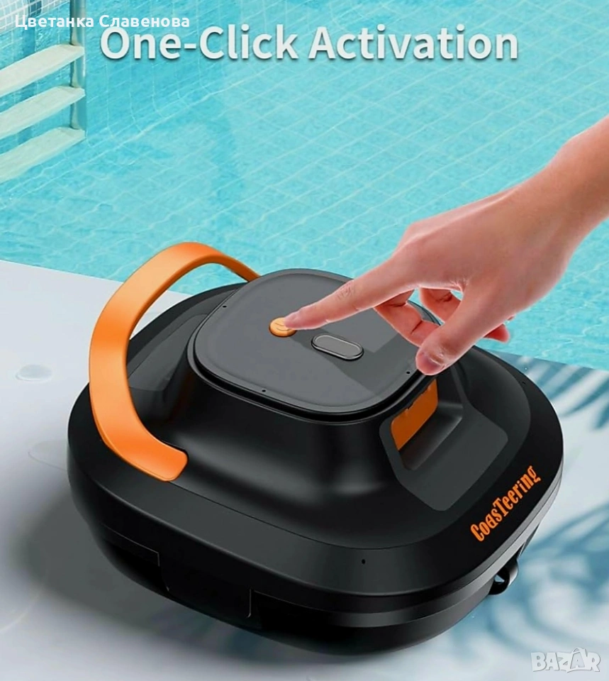 Лесен за употреба: просто натиснете бутона за включване/изключване и роботизираната почистваща машина за басейни CoasTeering автоматично започва да почиства басейна, намалявайки нуждата от ръчна поддръжка. Когато батерията е изтощена или цикълът на почистване е завършен, тя автоматично спира на ръба на басейна и може лесно да бъде извадена с помощта на включената кука.