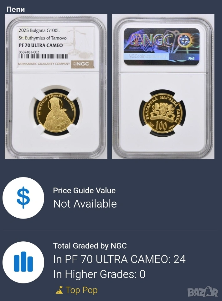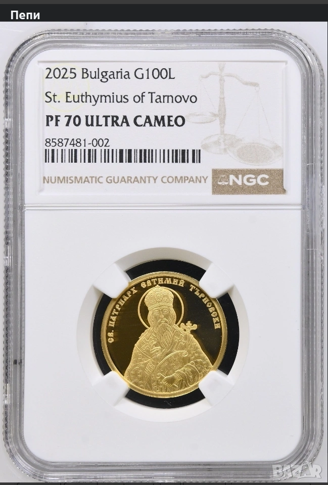 100 златни лева Патриарх Евтимий Търновски → Обява 53298763