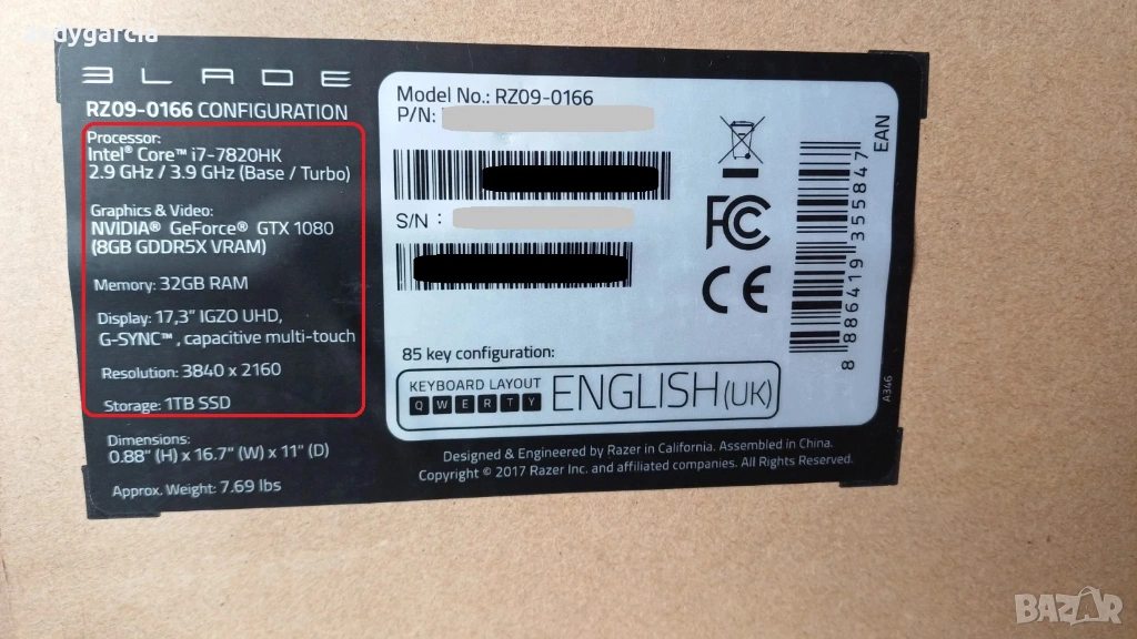 Продавам уникално запазен Razer Blade Pro 2017 (Core i7-7820HK,